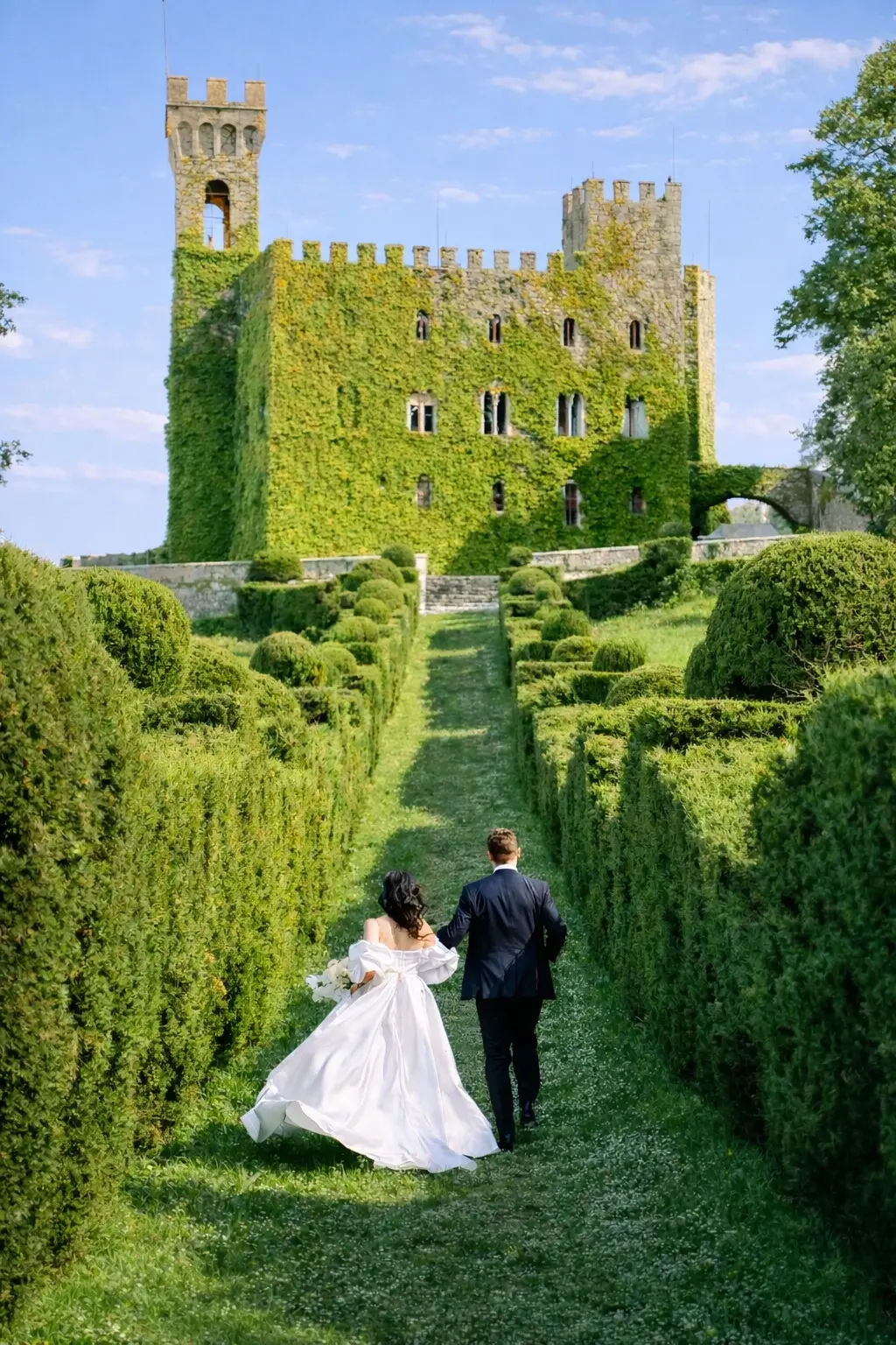 La struttura del Castello offre diverse alternative per celebrare il vostro matrimonio, dal prato antistante la Cappella al cortile del Castello, dal bosco all’inglese al Granaio, che vanta due sale coperte da un maestoso tetto a capriate e una bellissima loggia sulla campagna senese. Scegliete lo scenario che parla di voi.